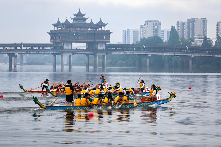 赛龙舟是中国端午节的习俗之一,也是端午节最重要的节日民俗活动之一。赛龙舟作为一项水上娱乐项目,整个运动过程中,不费汽油也不费电力,不消耗能源也不产生污染,是一项绿色健康的健身休闲方式。